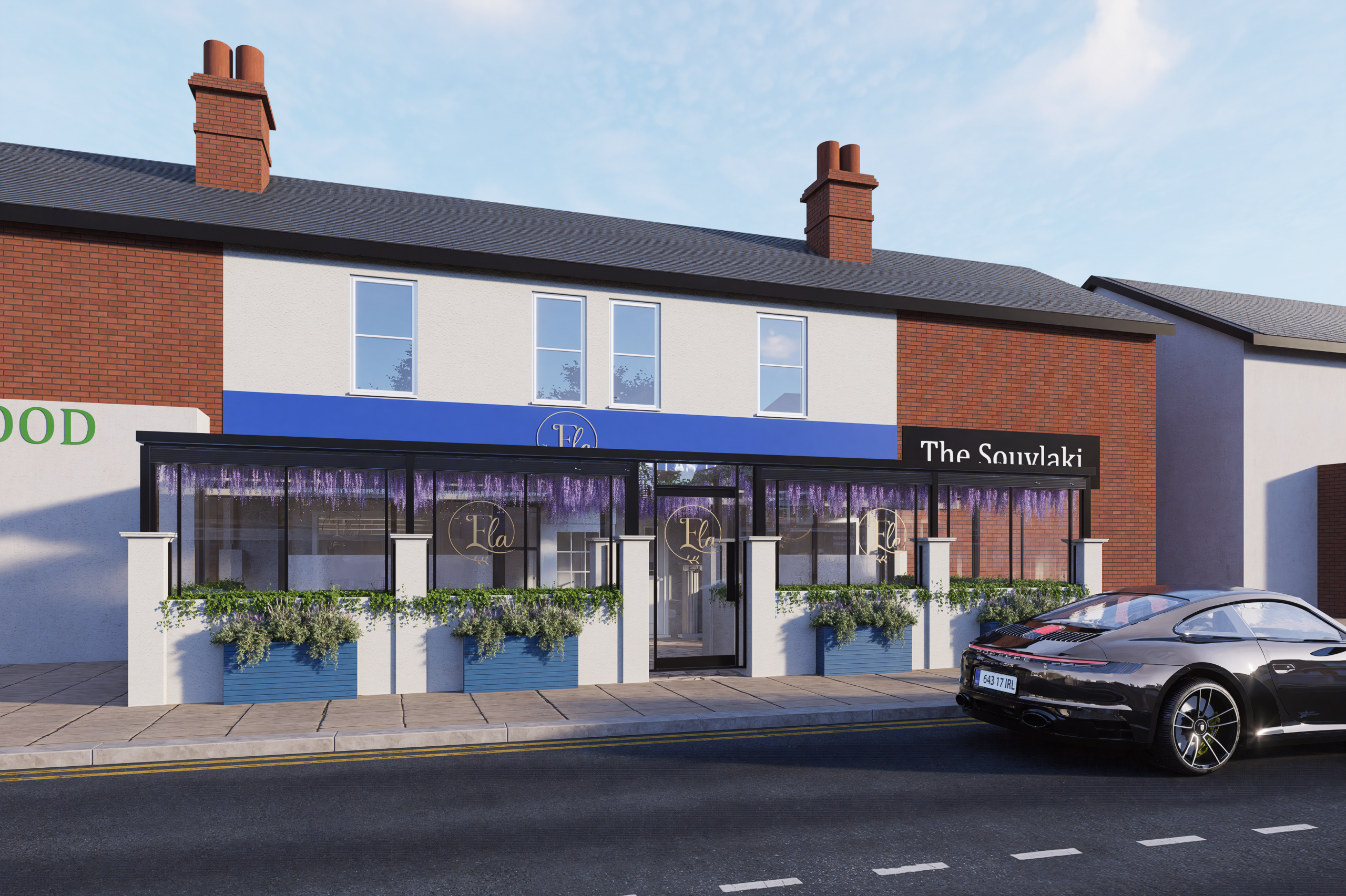 109–111 Wilmslow Road, Handforth District Centre, Wilmslow SK9 3ER is a planning led commercial enhancement prepared to support two established Class E operators; Hellas Taverna and Artos Greek Bakery and Patisserie. Muse Architects were appointed to produce a Design and Access Statement and the associated planning submission. The works relate to the use of the private forecourt as a covered external eating and drinking area, together with limited coordination to the front elevation.