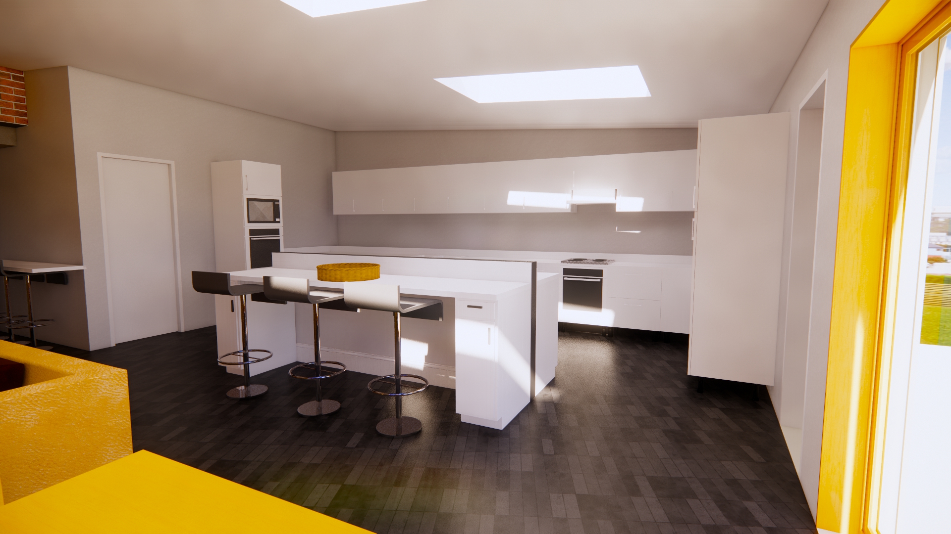 At 38 Swinton Crescent, the client appointed Muse Architects to develop a clear residential layout study and visual package; focused on space planning, daylight, and practical day to day use. The work set out a legible ground floor arrangement; separating quieter work focused space from social family space; and concentrating kitchen, dining and utility functions into an efficient service core.