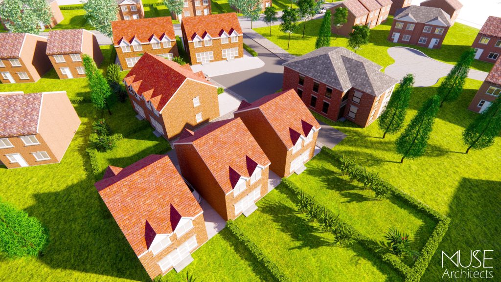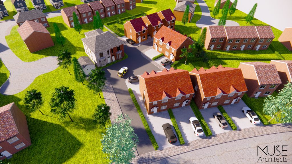 The site had previously been a vacant plot used for storage for an extended period and made limited contribution to the street scene. The completed scheme brought the land back into active use, replacing an underused enclosure with a coherent residential layout and a more ordered, visually positive backdrop to the surrounding neighbourhood.