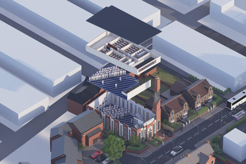 Muse Architects were commissioned to support a planning led transformation to improve capacity, accessibility and community provision, including a Manchester City Council planning approval (ref 121897/FO/2018), granted in June 2021. The ambition is to upgrade facilities for worship, education and civic engagement; while creating inclusive access for disabled and elderly worshippers and providing dedicated space for youth, women and after school learning.