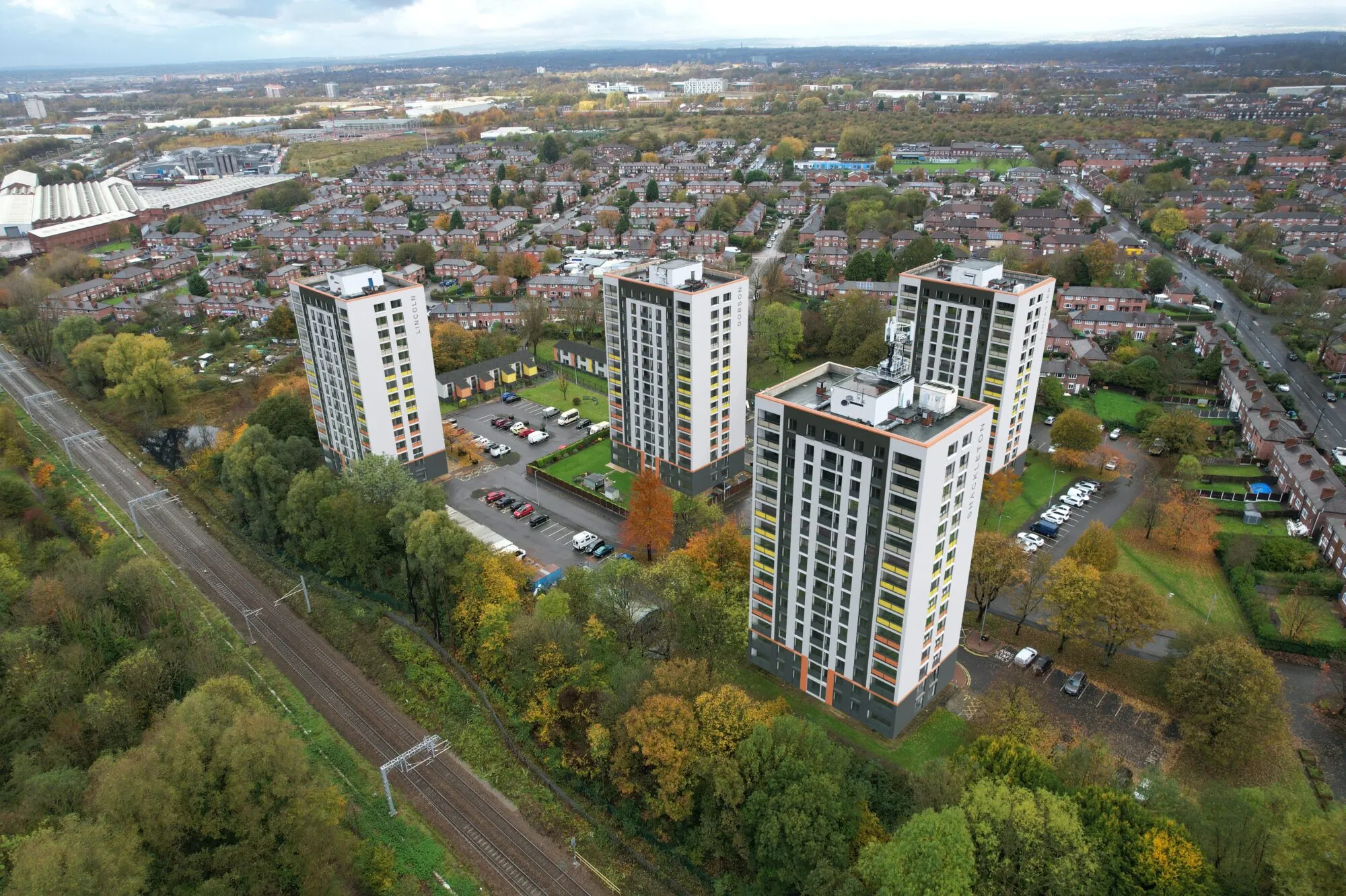 Our retrofit works spans our specialist sectors and includes recladding residential towers like Fitzwarren Court and Albion Towers in Salford to the refurbishment of industrial units for Network Space at Broadheath Network Centre, Altrincham.